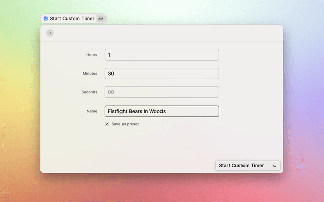 This is a lightweight extension allowing you to start and stop countdown timers, stopwatches, and alarms. It works directly in Raycast, no external apps or dependencies required.