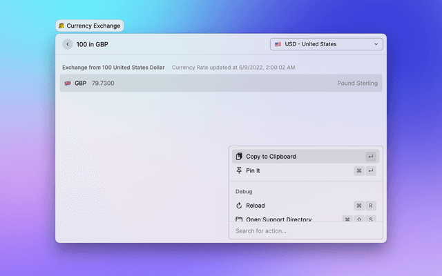 There's a currency exchange function out of box in Raycast's Calculator.